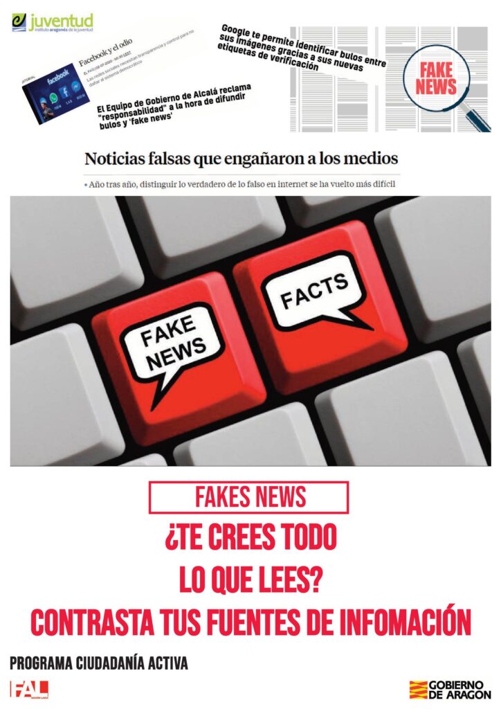 Desde la FAL, y en el marco del Programa de ciudadanía activa, hemos impulsado la campaña “Fake news”, dirigida a sensibilizar y formar a la ciudadanía sobre los riesgos y consecuencias de la difusión de noticias falsas.